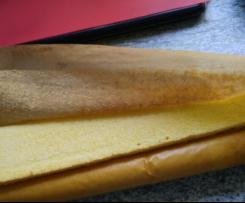 - => Achtung, der Teig muss oben noch hellbraun sein, damit er später beim Rollen nicht bricht => Kurz nachdem die kleinen glänzenden Feuchtigkeitströpfchen auf der Oberfläche abgetrocknet sind, ist eine gute Zeit zur Entnahme aus dem Backofen.
