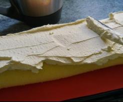 - Sahne darauf verteilen - am hinteren langen Rand ca. 2,5 cm freilassen (damit es beim Rollen dort nicht herausquillt)