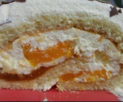 Auch mit nur 1 Dose Mandarinen gelingt die Roulade zu jeder Jahreszeit gut - es muss ja nicht soviel Deko außen dran sein.