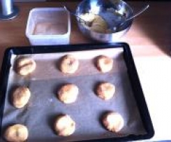 Auf ein Backblech geben (Achtung, die laufen sehr auseinander, max 9 Stück pro Blech) und 10 - 12 Minuten bei 180 °C Grad Umluft auf unterer Schiene backen.