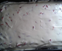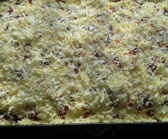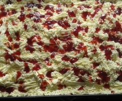 Dann verteilt ihr das ganze einfach kreuz und quer über den Belag, wie "Spaghettis" halt! Danach wird die Erdbeersoße auch in ein Gefrierbeutel gefüllt und spritz sie auf die "Spaghettis"!