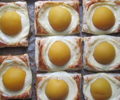 Die Pfirsich-Quark-Teilchen im heißen Ofen ca. 20 Minuten backen.