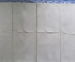 Den Blätterteig ausbreiten und in 8 Stücke teilen (ca. 12 x 10 cm).