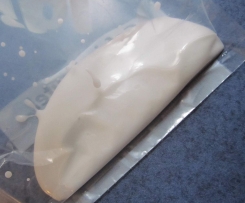 Eine 1-2 mm große Ecke abschneiden und den Guss in Streifen auf die Teilchen spritzen.