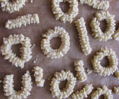 Den Teig durch einen Fleischwolf drehen ,und als Kreis