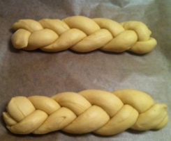 Der Teig war so klebrig, dass es mir nicht gelungen ist, daraus Zöpfe zu machen. Auch nach Zugabe von Mehl, hat es nicht funktioniert. Ich habe aus dem Teig ein Brot geformt und dann gebacken.