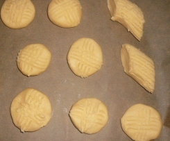 Bitte nur Butter nehmen, weil wenn Sie Margarne nehmen, laufen die Cookies auseinander ;-( , aber wenn Sie nur Butter nehmen bleiben Sie so, wie Sie auf`s Blech gelegt worden sind.