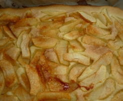 200 g Butter mit 4 Eiern, der Zitronenschale, dem Zucker und Vanillezucker 1 Min./Stufe 3 verrühren. Danach Mehl zugeben und das Ganze 30 sec./Stufe 3 unterrühren! Den Teig auf ein mit Backpapier ausgelegtes Blech streichen! Die Konsistenz des Teiges ist etwas zäh, aber gut streichfähig. Nach dem Verstreichen kommen die Apfelspalten auf den Teig und diese werden dann mit Zimtzucker bestreut.  Das Ganze kommt 30 Min bei 200 Grad in den Ofen! Nach dem Backen kann der Kuchen in Stücke geschnitten werden, mit Mandelblätchen und Puderzucker garniert werden!