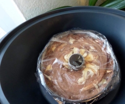 Gugelhupf (16cm Durchmesser) mit Klarsichtfolie abdecken (WICHTIG, da sonst der Wasserdampf, der sich am Varomadeckel sammelt in den Kuchen tropft)