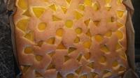 2 gr. Dosen halbierte Pfirsiche und die noch geviertelt. Stücke auch bis zum Blechrand geben. Sehr lecker. Saftiger Teig! Marzipan schmeckt man leicht. 35 Min. gebacken. Nächstes mal 3 Dosen nehmen.