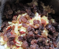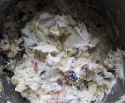 Die Masse mit dem Spatel nach unten schieben und die Äpfel und Rosinen zugeben.