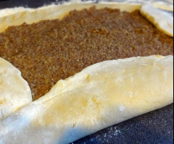 Den eher fluffigen Teig ca. 30x30cm ausrollen.