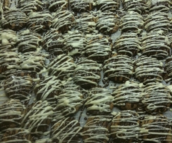 Schokolade in Stückchen brechen und in seperate Gefrierbeutel umfüllen, ca. 500g Wasser in den Mixtopf geben, 12 - 15 Minuten Varoma Stufe 1 im Gareinsatz schmelzen, Ecke abschneiden und Kekse verzieren