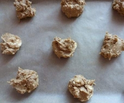 Mit einem Esslöffel oder Eisportionierer Tischtennisballgroße Portionen abstechen und mit Abstand auf den Blechen verteilen.