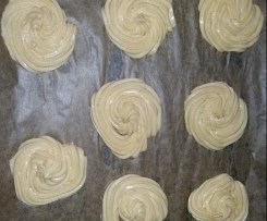 Den Teig in eine Sterntulle füllen und beliebige Form ausdrücken auf Backpapier und im vorgeheitzten Backofen ausbacken bei 200 Grad ca. 30 min. ( BAckofentür nicht öffen sonst fallen sie ein ) Danach nach belieben füllen.. ( creme Rezept oder Schokocreme .. siehe andere Rezepte von mir ) Viel Spaß