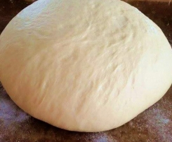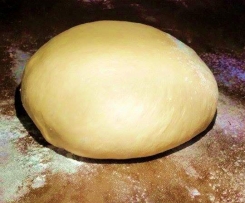 Hefeteig rund wirken, mit Mehl bestäuben und auf eine Dauerbackfolie legen und evtl. mit Wasser besprühen und im Backofen bei eingeschaltetem Licht etwa 2 Std. gehen lassen.