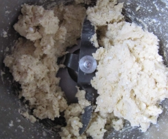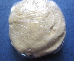 Den Teig als Kugel geformt in einem Stück Frischhaltefolie ca. 30 Minuten kalt stellen.