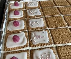 13. Aus Puderzucker und Zitronensaft eine Glasur anrühren und auf die Butterkekse streichen... nach Lust und Laune dekorieren.