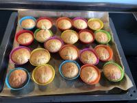 Den Teig umfüllen in 12 Muffinförmchen und für 20 min in den Backofen - auskühlen lassen und nach Wunsch noch mit Puderzucker bestreuen