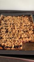 Diese dann auf dem Teig verteilen und die Streusel drüber verteilen.