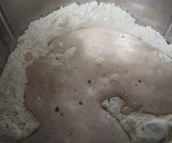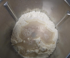 "Mixtopf geschlossen" schließen und an warmen Ort stellen (z.B. Nähe Heizung) und ca. 30 Minuten gehen lassen, bis sich die Hefe aufgelöst und eine Haube aus Bläschen gebildet hat