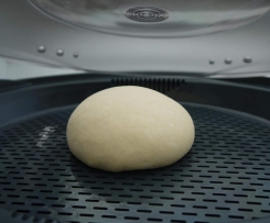 "Mixtopf geschlossen" wieder an einen warmen Ort stellen und Teig gehen lassen bis er die doppelte Menge hat (ca. 20 Min)