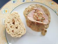 Aus Ermangelung an Brötchen, hab ich Vollkornknäcke und Semmelbrösel eingearbeitet, zusätzlich noch Kräuter.
