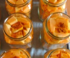 Die Menge ergab bei mir 6 Gläser a 300g Kürbisstifte.