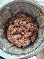 Habe mich genau ans Rezept gehalten, lediglich auf das Anfrieren der Leber verzichtet und 1 Ei zusätzlich hinzugefügt, um ein bisschen mehr Flüssigkeit in die Masse zu bringen.