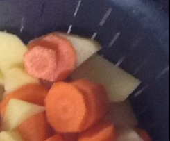Kartoffeln u rotten schnippeln u in Garkörbchen füllen.( gewaschen!) 550 Wasser im wasserkocher erhitzen.