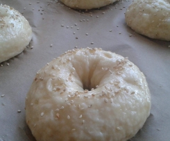 Habe gestern Bagels nach diesem Rezept gemacht, aber mit Dinkelmehl. Sind sehr fluffig und locker geworden, nicht ganz so prall. Tatsächlich mag ich Bagels in der festen Konsistenz, wie ich sie aus dem Bioladen kenne, noch lieber. Aber als Frühstückskringel sind sie wirklich gut.