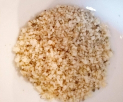 Währenddessen das Topping zubereiten. Parmesan 10 Sekunden / Stufe 10 reiben. Umfüllen. Alle weiteren Gewürze zum Parmesan dazu geben und verrühren.