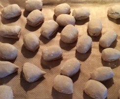 Habs mir einfach gemacht und den Teig in dickere Stränge geformt und mit der Schere mundgerechte Stücke abgeschnitte. Spart man sich das Ausrollen
