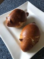 Toller Teig und lecker. Übernachtgare, morgens Mäuschen geformt, kurz in die Tiefkühle, gelaugt, die Kinder lieben sie. Danke