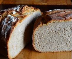 Super Brot, habe es jetzt 2 x gebacken. Einmal genau nach Rezept, schmeckt super, ist richtig kross !! Einmal hab ich Backsaat und Haferflocken reingeknetet.....wow.......beides Spitze !!! Backzeit wie im Rezept beschrieben, gebacken in einer Tonschüssel mt Deckel. Volle Punktzahl von mir.