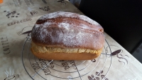 5. In eine gut gefettete Kastenform geben und oben einschneiden - ich mache immer eine Furche von vorne nach hinten. Ist aber jedem selber überlassen wie er es macht.