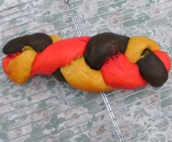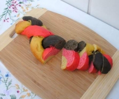 ACHTUNG: Das Brot darf nicht zu lange backen, sonst werden die gelben und roten 'Brötchen' braun !!!