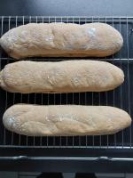 Ich habe die Baguettes mit Dinkelvollkornmehl und Dinkelmehl und ohne Röstzwiebeln gebacken und sie sehen sehr gut aus.