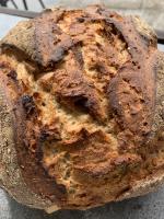 Habe noch etwas getrockneten Sauerteig dazu , 2 x gehen lassen und in warmen Ofen, ohne Deckel. Geschmacklich sehr gut .