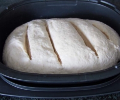 Nun vorsichtig in eine längliche Form bringen und in eine gefettete, leicht bemehlte Backform [welche auch immer ihr gerne nutzt] geben und 40 min gehen lassen.