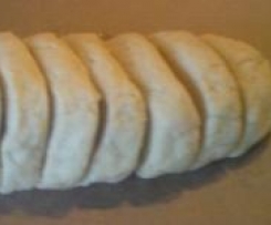 Nach den 45 Minuten den teig zu einer Rolle formen ( das geht ohne Probleme ) und die Teigrolle mit einem scharfem Messer in Scheiben schneiden......ruhig richtig durchschneiden ABER nicht auseinander schieben.