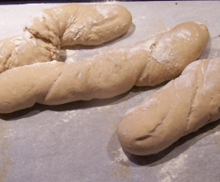 Heute die gedrehten Stangenbrote gebacken. Sie sind super geworden und schmecken auch sehr lecker. Der Teig hat sich schön drehen lassen und hat auch die Form behalten. Werden wieder gebacken.