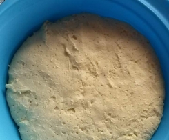 Den Teig nun abdecken (T****R-Schüssel) für 1 h an einem warmen Ort gehen lassen, dann sieht er