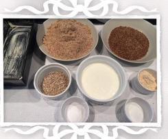 Achtung: bei der Alternative einfach Sojamehl, Wasser weglassen stattdessen: Eier, Butter, Sesam mit hinein geben (Mandeln bleiben gleich)