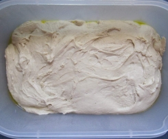 Teig in eine leicht geölte Kunststoffdose (meine ist 27 x 17 cm groß) geben ......