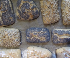Ich habe die Rohlinge aber einfach mit Wasser eingesprüht und dann in die Samen gedrückt, das ging prima. Und ich habe mit Weizenmehl Type 550 gebacken, beim nächsten Mal werde ich aber auch Dinkelmehl ausprobieren. Jedenfalls kann ich das Rezept sehr empfehlen, es hat 5 Sterne verdient!
