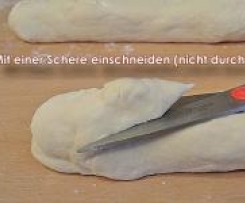 Den Teig mit einer Schere im 45 Grad Winkel einschneiden/Nicht durchschneiden