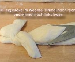 Die eingeschnitten Teigstücke im Wechsel mal nach rechts und mal nach links zur Seite legen