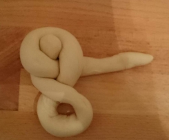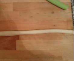 Aus dem Teig 8-10 gleich große stücke schneiden und zu ca. 30cm langen Strängen rollen