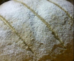 " Modus „Teig kneten“" verkneten. Den Teig in eine bemehlte Schüssel umfüülen und en einem warmen Ort 1 - 1,5 Std. gehen lassen.Die Arbeitfläche leicht bemehlen und den Teig mit geölten Händen ca. 10x falten. Einen schönen Brotlaib formen und in einen nicht! gewässerten, aber gefetteten und bemehlten Römertopf legen. ( ich habe das Brot auch schon in einer Auflaufform gebacken - wir genauso ) Den Brotlaib nun mit Mehl bestäuben und nach Belieben einschneiden. Den geschlossenen Römertopf nun auf die unterste Schiene in den kalten!! Backofen stellen. Bei 240° / ca. 50 Min backen lassen